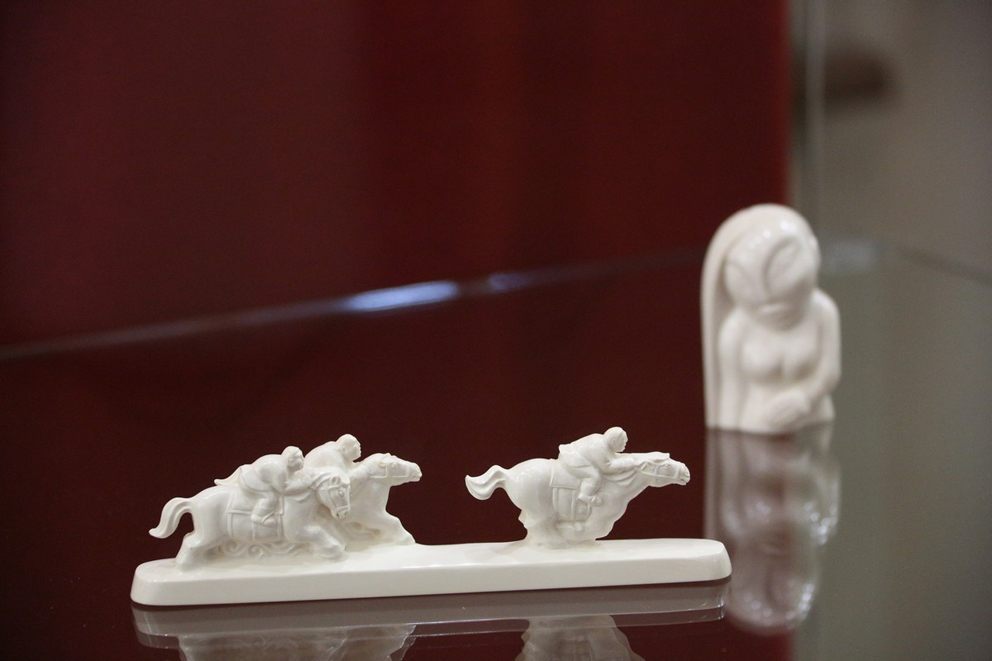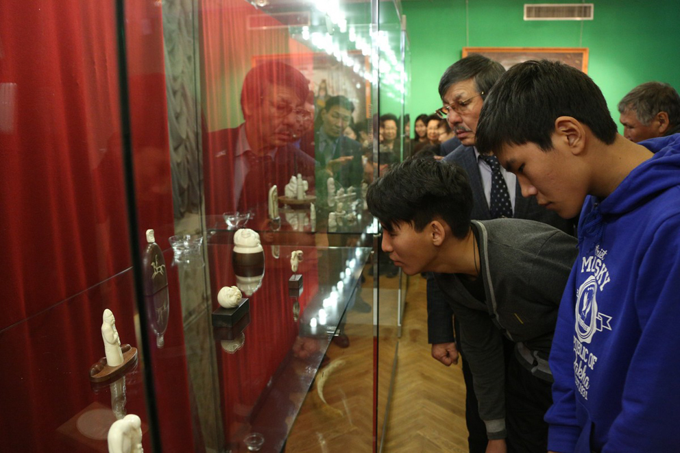 В эти дни в Национальном художественном музее организована его выставка, где можно увидеть как объемные работы, так и изящные вещи, напоминающие японские нэцки. Это — знаменитое якутское батыйа, чорон с рельефным изображением революционера-большевика Платона Ойунского, инкрустированный золотом, “Шаман-ворон”, дух охоты “Байанай”, “Бой лосей”, “Бык холода” и другие.