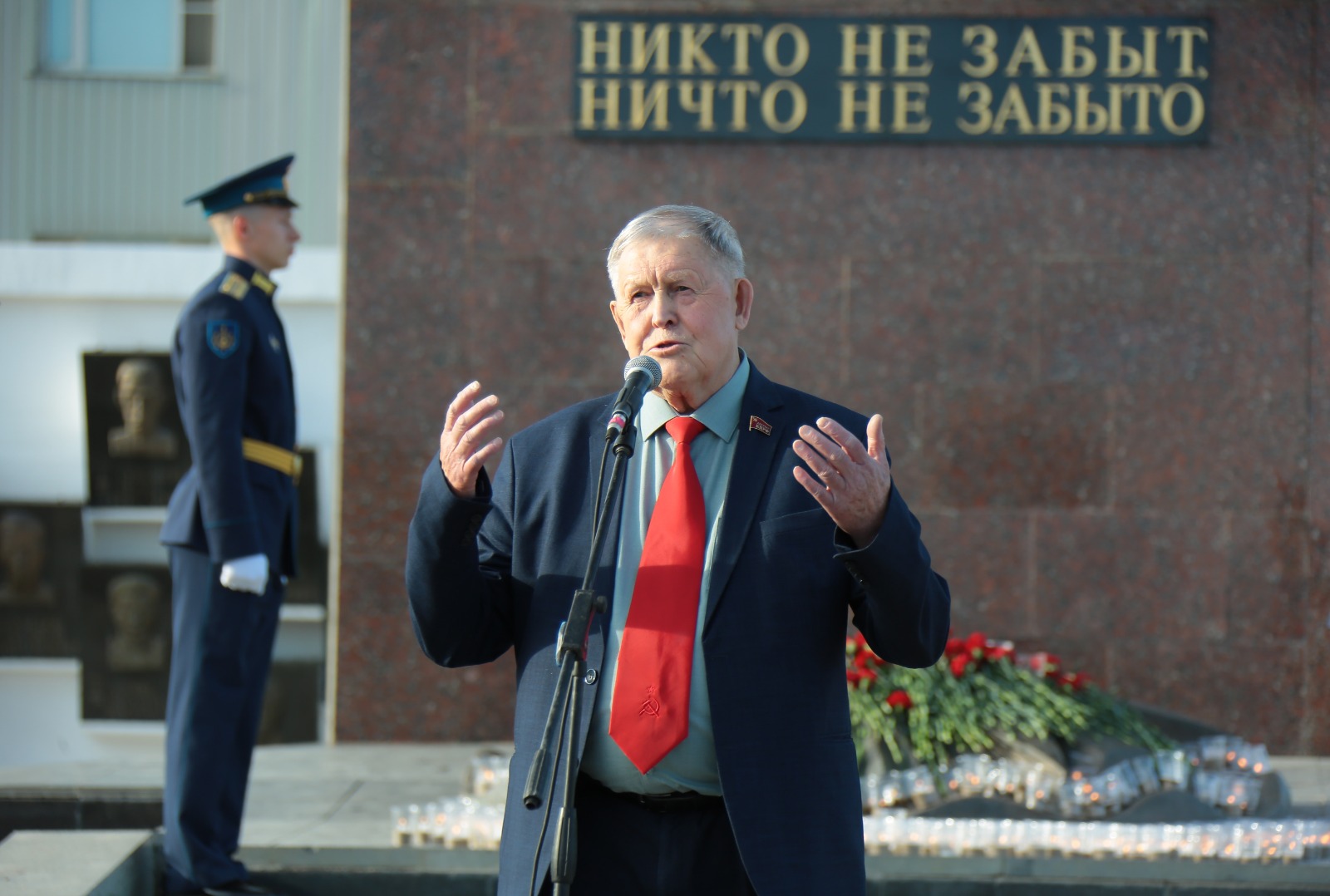 Сейчас, в этот сложный период, когда решается судьба нашей страны, безопасность ее рубежей, надо всем объединиться и сплотиться. Они пытаются расколоть нашу страну, измотать войной и внутренними диверсиями. Запад использует Украину как бомбу для того, чтобы взорвать Россию. Введены беспрецедентные экономические санкции, нашей стране объявлена настоящая широкомасштабная война. И в этой ситуации мы с вами, все россияне должны поддержать нашего Президента, наши вооруженные силы. Мы всегда объединялись в сложные времена. Такие качества, как, единение, сплоченность, взаимопомощь сегодня очень важны. Благодаря стойкости, сплоченности, внутренней силе мы всегда побеждали врага! Страна, пережившая ВОВ, потерявшая 27 млн. человек никогда не допустит нового фашизма на своей земле! История еще не знала таких разрушений, варварства и бесчеловечности, каким был отмечен путь гитлеровцев по советской земле. Чтобы каждое новое поколение знало, какую цену заплатили наши деды и прадеды. Никто не забыт, ничто не забыто! Победа будет за нами!, - заключил вице-спикер парламента.