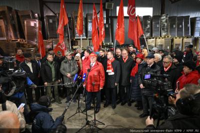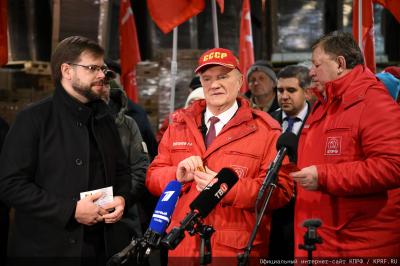 - Уважаемые товарищи! Хочу присоединится к добрым словам и пожеланиям Геннадия Андреевича Зюганова в адрес всех наших товарищей, и в первую очередь тех, кто сегодня здесь отправляет очередной наш гуманитарный конвой. Всех тех, кто активно нам помогает по сбору и отправке наших конвоев. Не случайно мы сегодня начали разговор и вышли на связь с Брянским обкомом КПРФ, они еще на Пленуме попросили помощи, так как прифронтовая зона осталась без присмотра, без продовольствия. И в ближайшие дни мы им отправили конвой. И вот сегодня многотонная фура там разгружается, плюс сегодня еще пойдет груз, включающий все необходимое. Там живут люди, и мы обязаны им помочь.