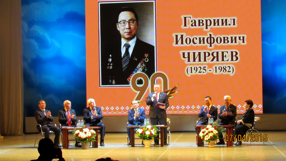 В Якутске в переполненном зале Театра оперы и балета им Суоруна Омоллона состоялось торжественное собрание общественности республики и г. Якутска, посвященное 90-летию видного государственного, политического и партийного деятеля Гавриила Иосифовича Чиряева.