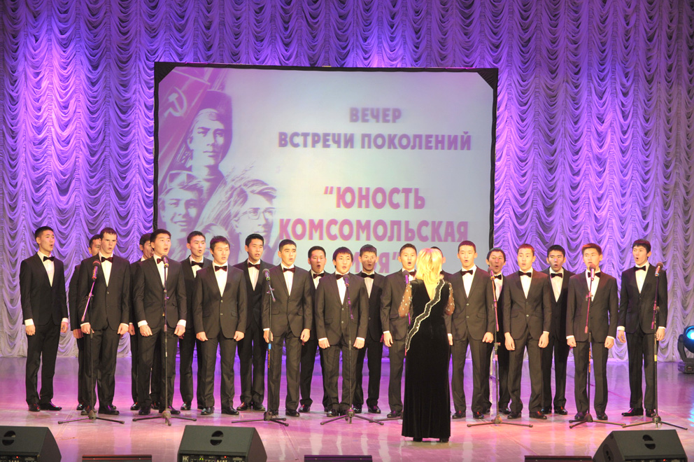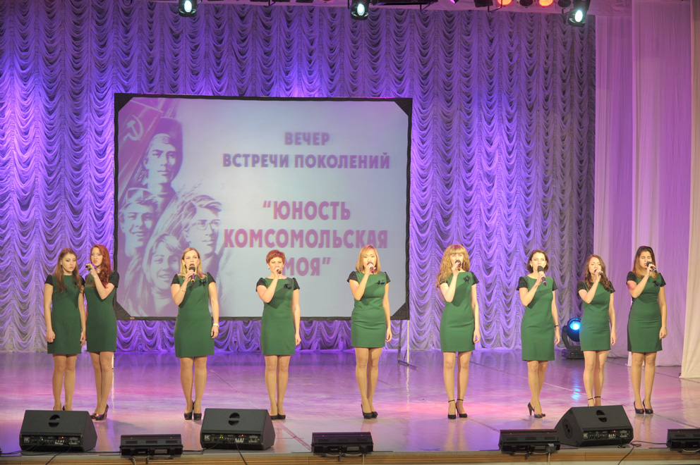 Хор ветеранов алмазодобывающей промышленности поднял охотно подпевавшим зрителям настроение. Хор МРТК поставил перед собой иную цель — напомнить людям о том, что комсомольцы известны не только трудовыми, но и боевыми подвигами. Только в первый день Великой Отечественной войны на фронт ушли около миллиона комсомольцев.