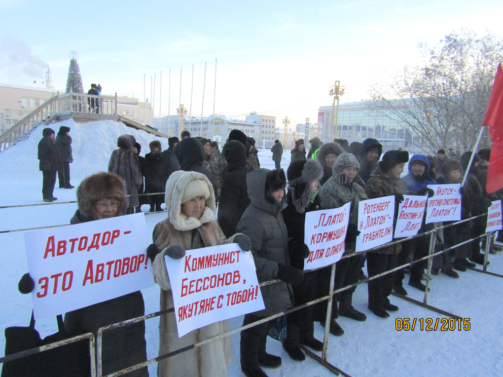 19 декабря с.г. в Якутске на площади Ленина (напротив Дома правительства № 1) в 12.00 состоится митинг дальнобойщиков «Против нового транспортного налога и системы «Платон».